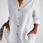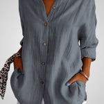 - Στυλάτος πλισέ σχεδιασμός: Οι διακριτικές πτυχές αυτού του σχεδιασμού προσθέτουν υφή και οπτικό ενδιαφέρον στα ρούχα σας, κάνοντάς σας να φαίνεστε αβίαστα κομψές. Αυτή η μπλούζα είναι όχι μόνο άνετη, αλλά και πραγματικός μαγνήτης για τα βλέμματα.