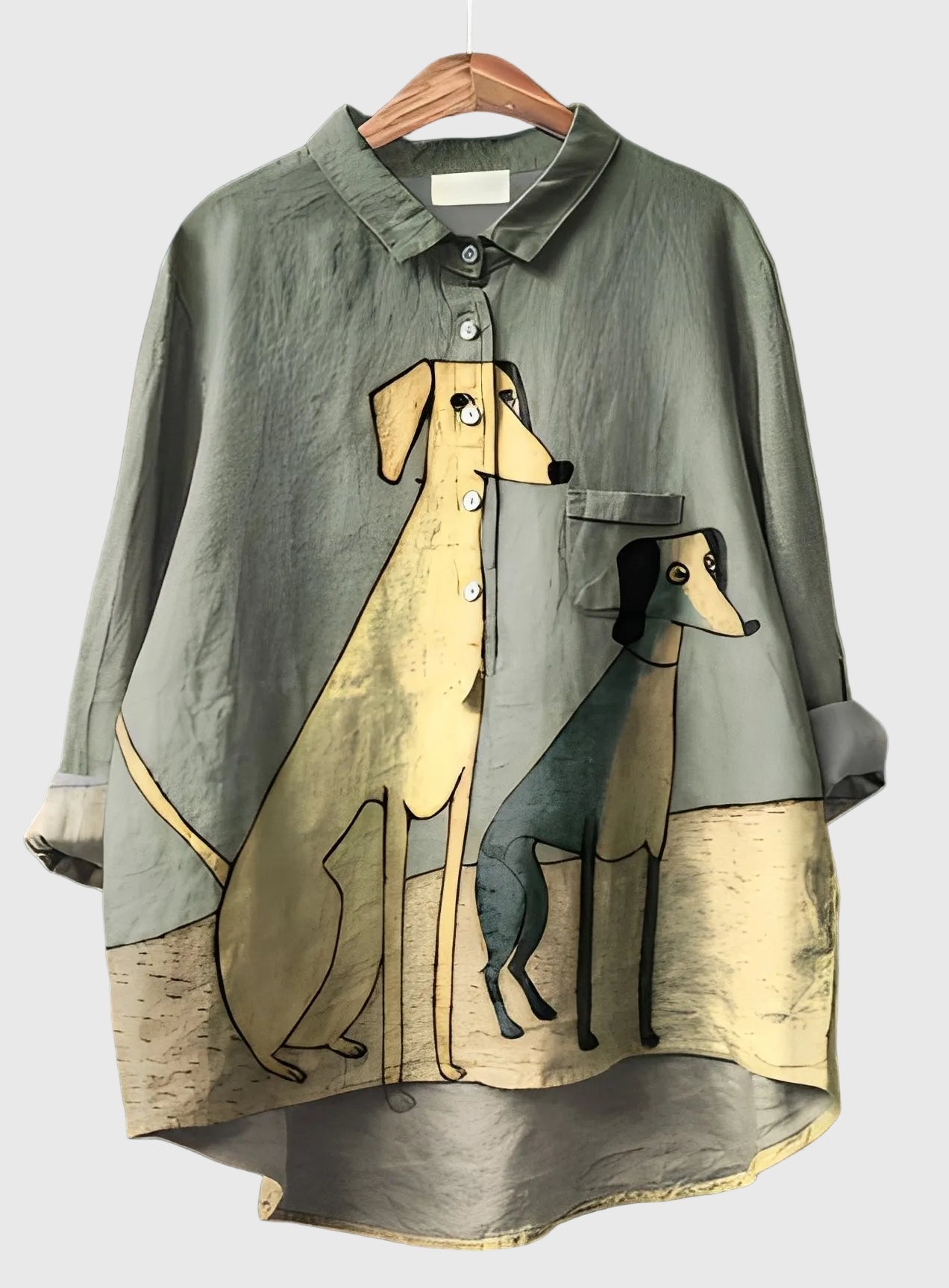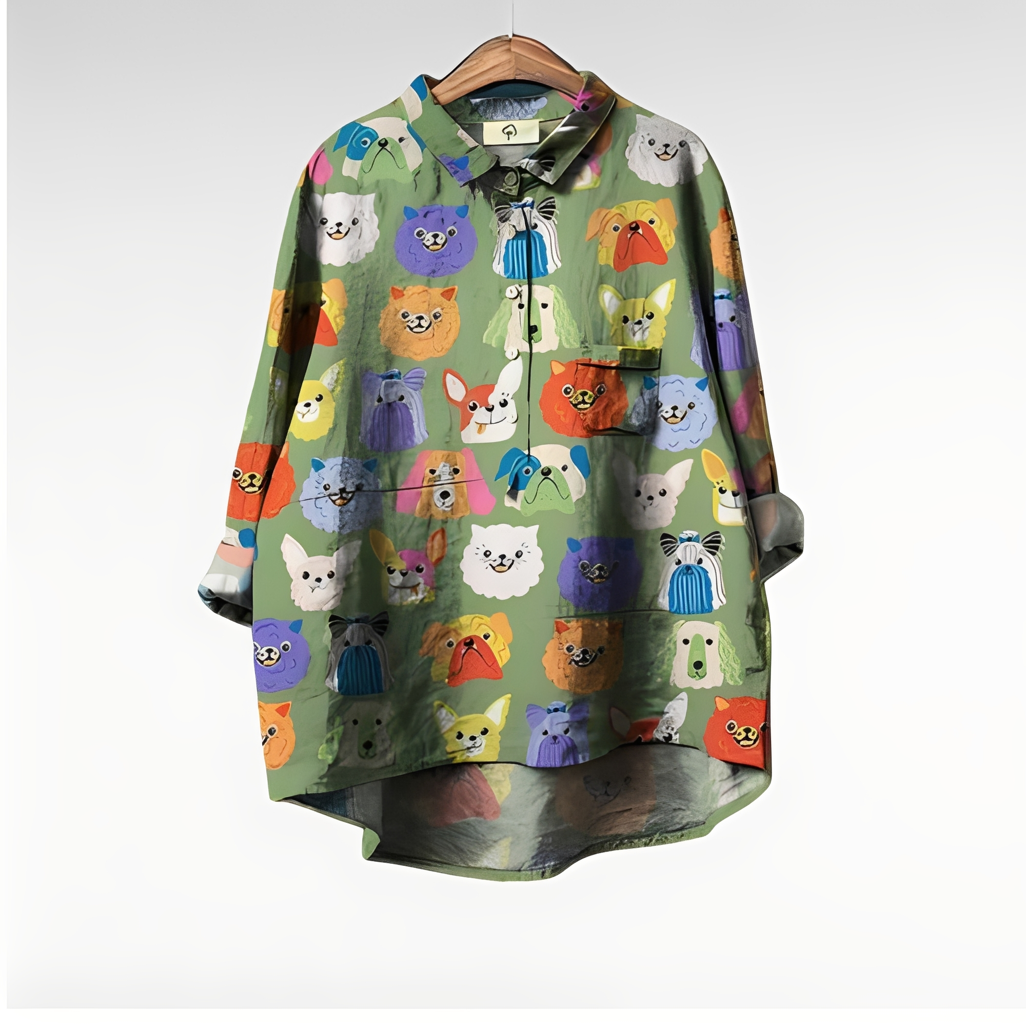 Η γυναικεία μπλούζα Ειρήνη με μακρύ μανίκι ξεχωρίζει με ένα μοναδικό και παιχνιδιάρικο σχέδιο με σκυλιά που προσθέτει χαρακτήρα στην γκαρνταρόμπα σας. Φτιαγμένη από μαλακό και αναπνεύσιμο ύφασμα, προσφέρει άνεση όλη μέρα χωρίς να θυσιάζει το στυλ. Η casual και κλασική γραμμή της την καθιστά εύκολη στην συνδυασμένη χρήση με παντελόνια, φούστες ή τζιν για μια χαλαρή ή κομψή εμφάνιση. Αυτή η μπλούζα είναι ελαφριά και ευέλικτη, ιδανική για εργασία, αναψυχή ή ειδικές περιστάσεις. Με τον καλλιτεχνικό σχεδιασμό της, η μπλούζα Ειρήνη ξεχωρίζει ενώ παραμένει αβίαστα κομψή.