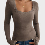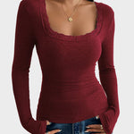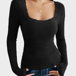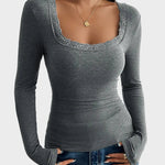 Κασσίντι | Λεπτό Μπλουζάκι με Δαντέλα και ΠάPatchwork U-Λαιμό