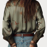 Cathrine | Σατέν Λουλουδάτο Πουκάμισο Με Λεοπάρ Τελειώματα