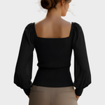 Αυτό το τοπ συνδυάζει την εκλεπτυσμένη υφή με την κομψή κίνηση, προσφέροντας μια καλαίσθητη σιλουέτα τέλεια για σύγχρονες, κομψές γυναίκες. Το μπούστο είναι κατασκευασμένο από ελαστικό ριχτό πλεκτό που αγκαλιάζει απαλά τη σιλουέτα, παρέχοντας τόσο δομή όσο και άνεση. Οι μαλακές σατέν μανίκες προσθέτουν μια κομψή αντίθεση—ελαφριές, αέρινες και διακριτικά όγκες—προσθέτοντας effortless θηλυκότητα στο σχέδιο.