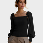 Farrah | Ριχτό Πλεκτό Τοπ με Σατέν Μπαλόνι Μανίκια
