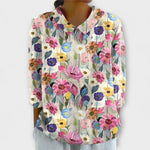 Kerry — Vintage Μπλούζα με Λουλούδια από Βαμβάκι και Λινό