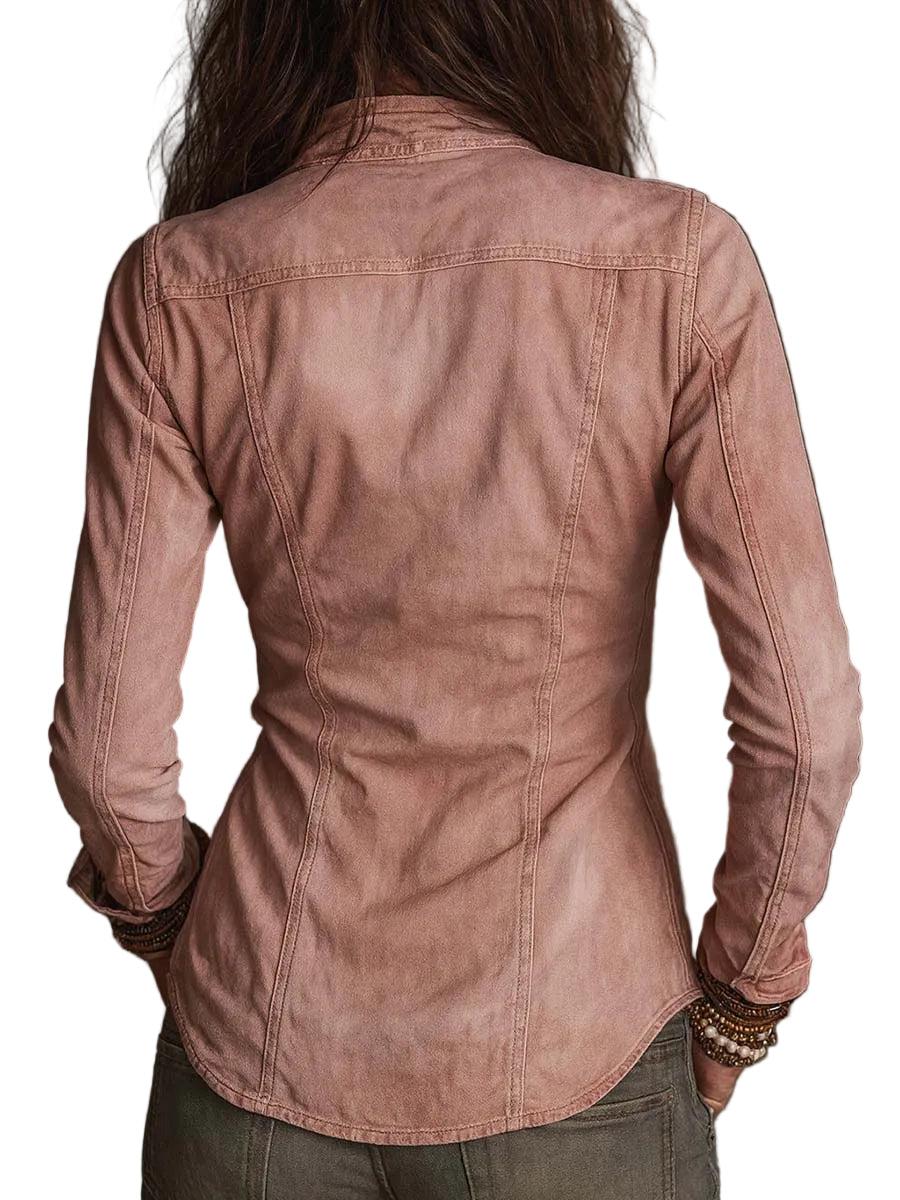 Seyma - Vintage Denim Πουκάμισο με Φερμουάρ και Ξέφτια (Vintage Zip-up Distressed Denim Shirt)
