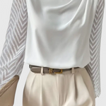 Λεπτή και θηλυκή με μια μοντέρνα αίσθηση, η Μπλούζα Zara είναι η απάντησή σου στην διακριτική κομψότητα. Με λεπτές διάφανες μανίκες και μια ρέουσα σιλουέτα, προσφέρει απαλότητα και δομή σε τέλεια ισορροπία. Είτε είναι στυλιζαρισμένη για την ημέρα είτε ντυμένη για τη νύχτα, η Zara προσθέτει μια αίσθηση χάρης σε κάθε στιγμή.