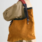 Μια αφής ανατροπή στην καθημερινή τσάντα—αυτή η τσάντα από κοτλέ είναι φτιαγμένη για τόσο για αγορές όσο και για στυλ. Η δομημένη μορφή, οι σχοινένιες λαβές και ο υπερμεγέθης εσωτερικός χώρος την κάνουν να φαίνεται τόσο λειτουργική όσο και φρέσκια.