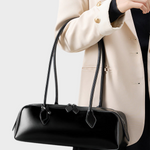 Λεπτές ιμάντες ώμου κάθονται άνετα στον ώμο σας ή στο χέρι, ενώ το διπλό φερμουάρ κλείνει τα πάντα με ασφάλεια και διευκολύνει την πρόσβαση. Καθαρή ραφή και γυαλιστερή φινίρισμα της δίνουν εκείνη την ήσυχη πολυτελή εμφάνιση που ταιριάζει με σακάκια, φόρεμα slip και όλα όσα περιλαμβάνονται στην καθημερινή σας ντουλάπα.