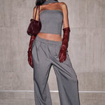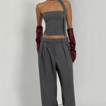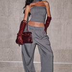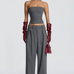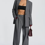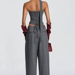 Κατασκευασμένο από γκρι μαρλ μη ελαστικό υφαντό ύφασμα κοστουμιού, το παντελόνι Κίρστι διαθέτει μια εκλεπτυσμένη μεσαία εφαρμογή με ευρύ σιλουέτα ποδιού. Η προσοχή στη λεπτομέρεια είναι προφανής στις διπλές πτυχές και τις διπλές τσέπες πίσω, συμπληρωμένες από μια διακριτική κλείσιμο με φερμουάρ για μια κομψή εμφάνιση.