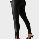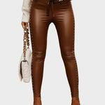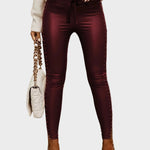 Κατασκευασμένο από υψηλής γυαλάδας, premium ψεύτικο δέρμα, αυτά τα παντελόνια προσφέρουν εφαρμογή σαν δεύτερο δέρμα που ευλύγιστο και κολακεύει. Οι μεταλλικές λεπτομέρειες στο πλάι προσθέτουν άκρη, οι μικρές σχισμές στον αστράγαλο επιμηκύνουν το πόδι, και η σατέν ζώνη στη μέση ολοκληρώνει την εμφάνιση με εκλεπτυσμένη αντίθεση. Σχεδιασμένα για να εντυπωσιάζουν—κάθε βήμα, κάθε γωνία.