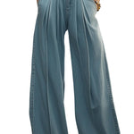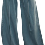 Η Mooyius παρουσιάζει το Φαρδύ Τζιν Παντελόνι. Αυτά τα εντυπωσιακά παντελόνια διαθέτουν ψηλή μέση και φαρδύ σχέδιο, εκφράζοντας κλασική κομψότητα και άνεση. Η πτυχώδης μπροστινή πλευρά προσθέτει υφή, ενισχύοντας τη συνολική κομψή εμφάνιση, ιδανική για οποιαδήποτε περιστασιακή ή ημι-επίσημη περίσταση.