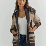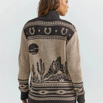 Αυτή η Ζακέτα με Γιακά Σάλι σε Western Στυλ συνδυάζει τη ρουστίκ γοητεία με την καθημερινή άνεση. Ο γιακάς σάλι προσθέτει κομψότητα και ζεστασιά, ενώ τα τολμηρά σχέδια με καβαλάρη φέρνουν στη ζωή το περιπετειώδες πνεύμα της Άγριας Δύσης. Κατασκευασμένη από μαλακό πλεκτό ύφασμα σε ευέλικτους ουδέτερους τόνους, προσφέρει άνετη εφαρμογή ιδανική για στρώσεις. Οι μοναδικοί κουμπάκια toggle ολοκληρώνουν την εμφάνιση με μια δόση αυθεντικότητας.