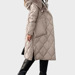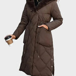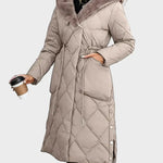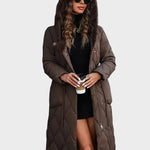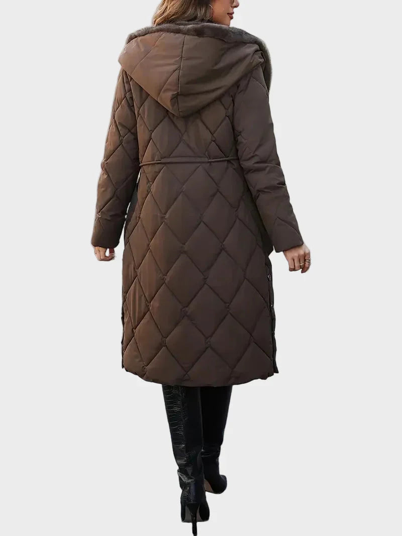 Ένα μακρύ επενδεδυμένο παλτό με μαλακό γιακά επενδεδυμένο με γούνα και ρυθμιζόμενη μέση για σχήμα. Η πυκνή επένδυση και ο σχεδιασμός πλήρους μήκους κρατούν τη ζέστη ακόμα και τις πιο κρύες μέρες. Η επιφάνειά του έχει μια λεία, ματ υφή με μια ελαφριά γυαλάδα υπό το φως. Η κουκούλα προσθέτει άνεση χωρίς να διαταράσσει τη καθαρή γραμμή του παλτού. Αυτοπεποίθηση και ήρεμο — φτιαγμένο για πραγματικά χειμερινά και βραδινά κλίματα.
