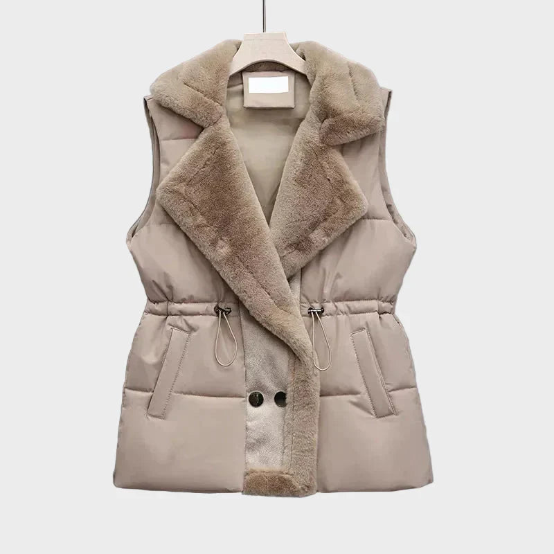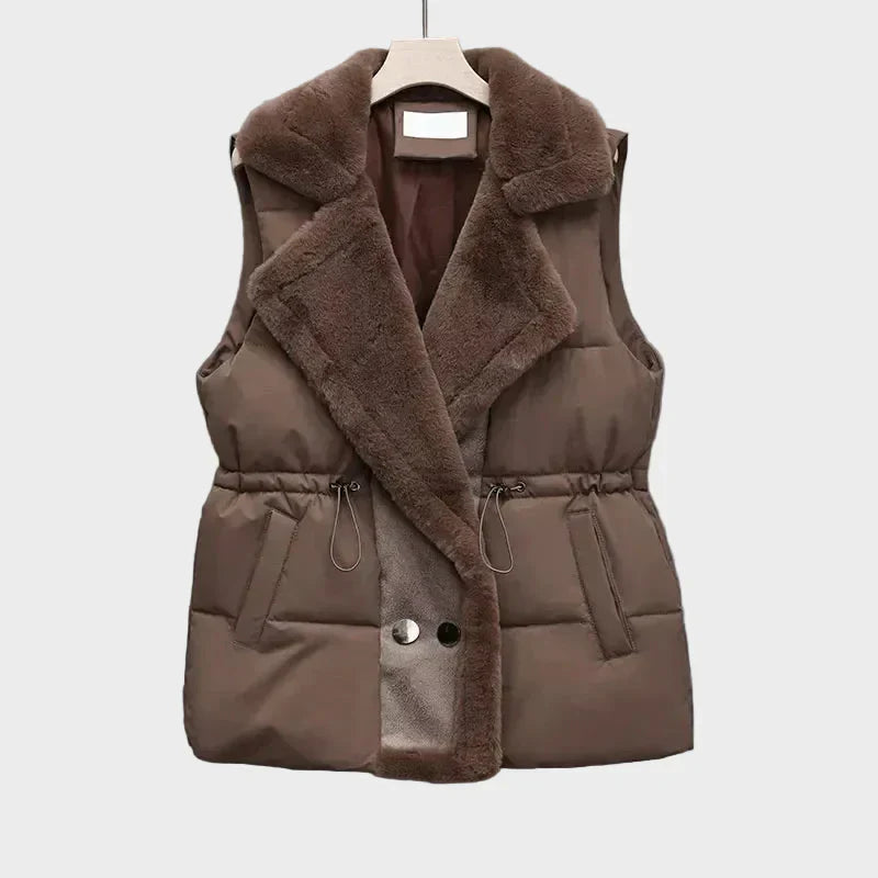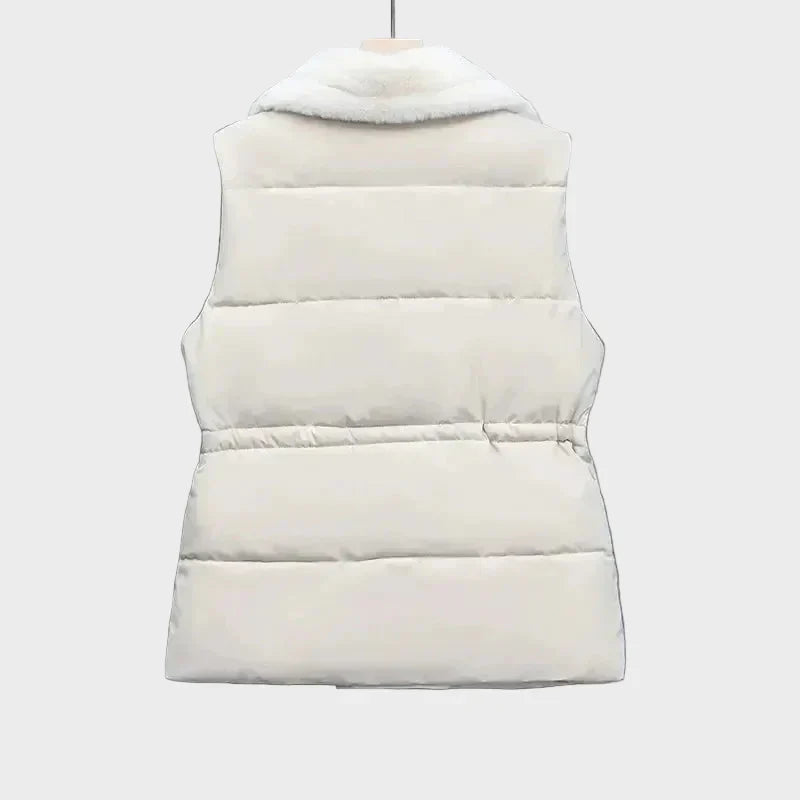 Εκλεπτυσμένο και θηλυκό, αυτό το καπιτονέ γιλέκο είναι σχεδιασμένο με μια απαλή δομή που κολακεύει ενώ διατηρεί τη ζεστασιά ισορροπημένη και ελαφριά. Ο γιακάς και η ρυθμιζόμενη μέση με κορδόνι δημιουργούν μια καλοσχηματισμένη σιλουέτα, συνδυάζοντας την άνετη μόνωση με μια ανυψωμένη, ραμμένη αίσθηση. Ένα ευέλικτο κομμάτι για στρώσεις που προσθέτει ήσυχη κομψότητα σε καθημερινές εμφανίσεις.