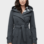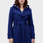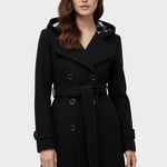 Hermione | Γυναικείο Παλτό Διπλής Στήθους από Μίγμα Μαλλιού με Κουκούλα και Ζώνη στη Μέση