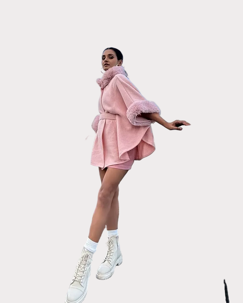 Leilany | Πολυτελή Χειμερινά Κάπες με Λεπτομέρειες Από Γούνα σε Ροζ – Lyra Athens
