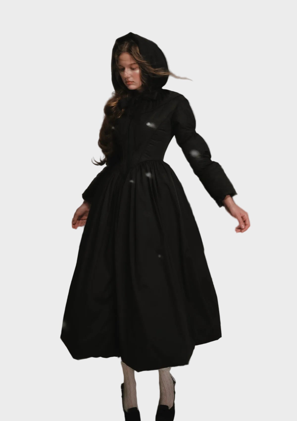 Φουσκωτή κουκούλα στυλ κάπας εμπνευσμένη από την παραμυθένια κάπα της Χιονάτης — παιχνιδιάρικη αλλά και προστατευτική