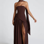 Το Φόρεμα Μάξι Elena συνδυάζει τη σύγχρονη κομψότητα με τη θηλυκή elegance – ιδανικό για ειδικές περιστάσεις, καλοκαιρινές βραδιές ή αποκλειστικές εκδηλώσεις. Ο ανοιχτός ώμος αναδεικνύει τη σιλουέτα σας, ενώ η ρέουσα φούστα με ασύμμετρη μέση και ψηλό σκίσιμο εξασφαλίζει μια εντυπωσιακή εμφάνιση.