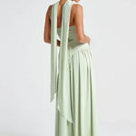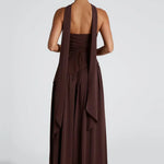 Elena – Maxi Φόρεμα με Ανοιχτούς Ώμους, Σκίσιμο & Choker Λεπτομέρεια