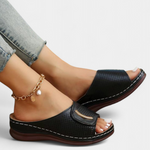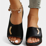 Τεχνική άνεση με εκλεπτυσμένο φινίρισμα. Τα σανδάλια Itziar συνδυάζουν μια ανατομική σόλα και μαλακή πάτημα με ένα μινιμαλιστικό διάτρητο σχέδιο που προσφέρει οπτική φρεσκάδα και υποστήριξη καθ' όλη τη διάρκεια της ημέρας. Η μεταλλική λεπτομέρεια προσθέτει μια μοντέρνα πινελιά που αναβαθμίζει την εμφάνισή σας χωρίς κόπο.