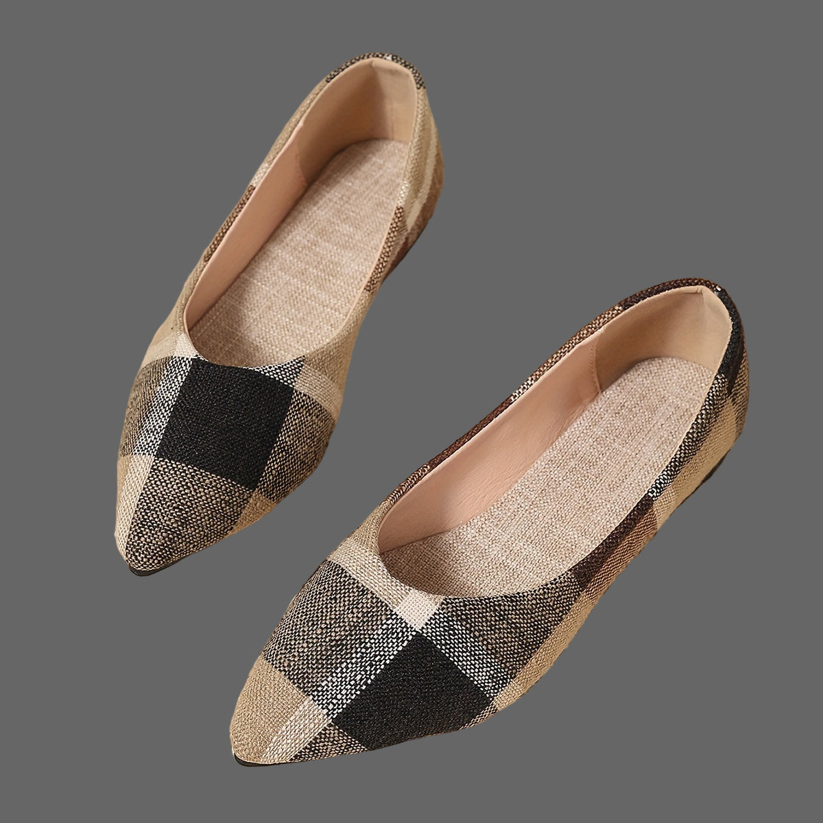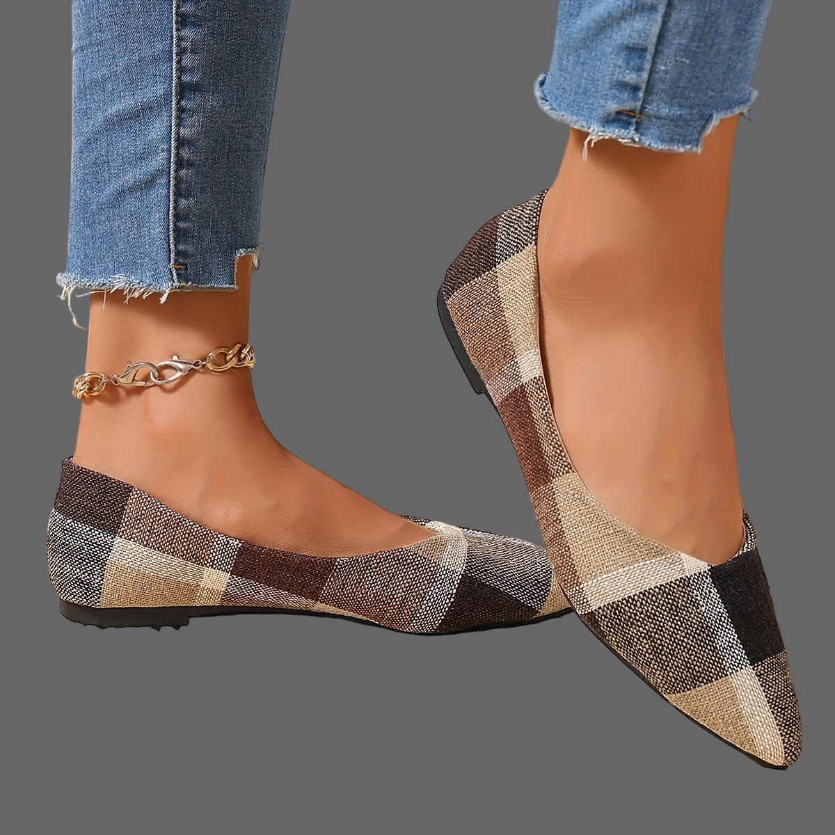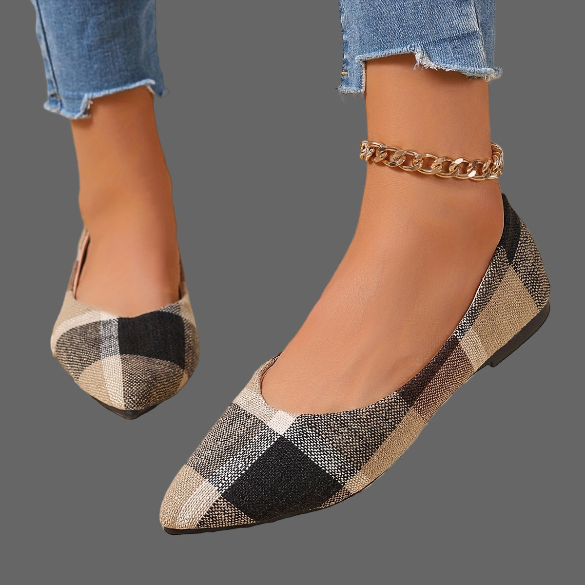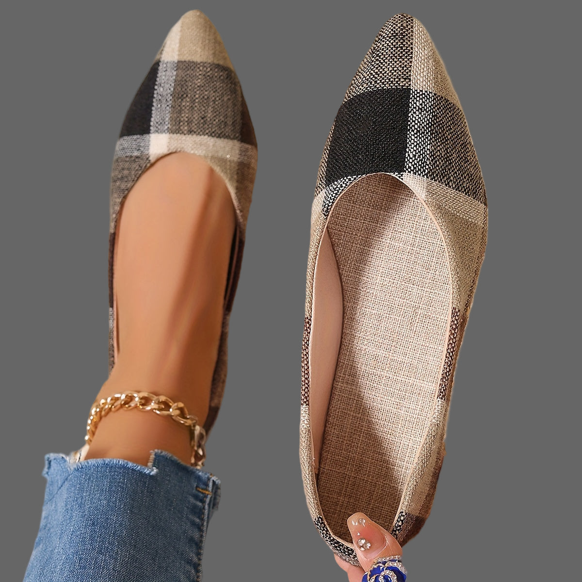 Αυτά τα καρό παπούτσια με αιχμηρή μύτη συνδυάζουν την ιταλική έμπνευση με την άνεση καθ' όλη τη διάρκεια της ημέρας, χάρη στις μαλακές σόλες τους. Κομψά και ευέλικτα, αναβαθμίζουν εύκολα τόσο τις καθημερινές όσο και τις επίσημες εμφανίσεις.