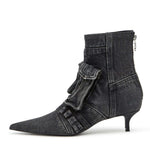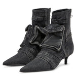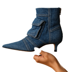 Κατασκευασμένες από premium τζιν σε ένα τολμηρό σχέδιο εμπνευσμένο από cargo, αυτές οι γόβες κάνουν μια δήλωση όπως καμία άλλη με την σκαλιστή μυτερή μύτη και την κομψή λεπτομέρεια τσέπης. Η υψηλής ποιότητας κατασκευή τους και η ανατομική σόλα με ενίσχυση παρέχουν διαρκή άνεση και στυλ, ξεχωρίζοντας ως μια διακριτική προσθήκη σε κάθε ντουλάπα.