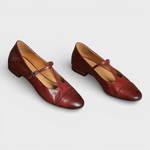 Διακριτές λεπτομέρειες brogue ενισχύουν το μινιμαλιστικό προφίλ αυτών των γνήσιων δερμάτινων μπαλαρινών, σχεδιασμένων με μια κομψή σιλουέτα T-strap για σύγχρονη άνεση και ευέλικτο στυλ.