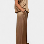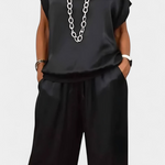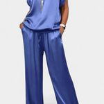 Εκλεπτυσμένο αλλά χαλαρό, το σετ Blasa συνδυάζει μια ροή μπλούζα με παντελόνια φαρδιάς γραμμής για να επιτύχει μια ελαφριά και ευέλικτη σιλουέτα. Σχεδιασμένο για όσους αναζητούν άνεση χωρίς να θυσιάζουν την κομψότητα, είναι ιδανικό για δραστήριες μέρες ή στιγμές χαλάρωσης με στυλ.