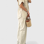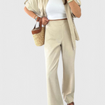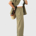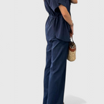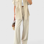 Σχεδιασμένο για να κινείται μαζί σου, το σετ Lani προσφέρει μια αίσθηση κομψότητας στην καθημερινή σου γκαρνταρόμπα. Με τον σχεδιασμό του από αέρινο πουκάμισο και ρέοντα παντελόνια, αυτό το ελαφρύ σετ προσφέρει άνεση που αναπνέει χωρίς να θυσιάζει το στυλ. Από brunch ραντεβού μέχρι ημέρες ξεκούρασης, είναι η επιλογή σου για μια διακριτική κομψότητα.