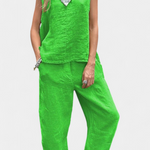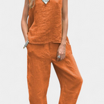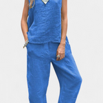Leona Αμάνικο Σετ με Γιλέκο και Παντελόνι από Βαμβάκι και Λινό