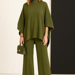 3️⃣ Χάρη στις αγορές σας καταφέρνουμε να προστατεύσουμε τον μισθό μας και την απασχόλησή μας.🧶 Περιγραφή προϊόντοςΑυτό το σύνολο από μαλακό και ζεστό μαλλί είναι η ιδανική επιλογή για όσους αγαπούν την άνεση χωρίς να θυσιάζουν την κομψότητα. Κατασκευασμένο από μίγμα μαλλιού, το σετ περιλαμβάνει παντελόνι με ελαστική μέση και μπλούζα με ψηλό λαιμό για μια κομψή αλλά χαλαρή εμφάνιση.Η ρευστή εφαρμογή και το ελαστικό ύφασμα προσαρμόζονται τέλεια σε κάθε σιλουέτα, προσφέροντας ελευθερία κινήσεων και άνεση που αγκαλιάζει όλη την ημέρα.Ιδανικό για τις πιο κρύες ημέρες, μπορείς να το φορέσεις:• στο σπίτι, για μια cozy αλλά προσεγμένη εμφάνιση,• στο γραφείο, με ένα ζευγάρι μοκασίνια ή μποτάκια,• στον ελεύθερο χρόνο, συνδυασμένο με sneakers για ένα casual chic στυλ.Ένα ευέλικτο, πρακτικό και κομψό κομμάτι — τέλειο για όσους θέλουν να νιώθουν κομψοί ακόμα και στις στιγμές χαλάρωσης.🔖 Λεπτομέρειες• Εφαρμογή: άνετη και περιβάλλουσα• Παντελόνι με ελαστική μέση• Μπλούζα με ψηλό λαιμό• Διαθέσιμο σε διάφορα χρώματα
