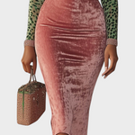 Regitze | Ροζ Βελούδινο Bodycon Φόρεμα Με Patchwork Ιμάντες Και Λεοπάρ Πατρόν