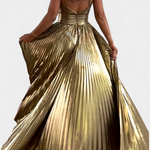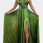 Αικατερίνη Μεταλλικό Φόρεμα Maxi με Χιαστί Λαιμόκοψη και Σκίσιμο