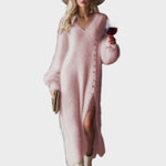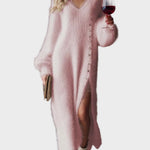 Το Πλεκτό Μίντι Φόρεμα με Σκίσιμο από Γούνα Κουνελιού είναι μια ενσάρκωση στυλ και άνεσης. Αυτό το κομψό φόρεμα είναι κατασκευασμένο από υψηλής ποιότητας απομίμηση γούνας κουνελιού, προσφέροντας μια απαλή και πολυτελή αίσθηση. Το μήκος μίντι και το πλαϊνό σκίσιμο προσθέτουν μια αίσθηση κομψής γοητείας, ενώ η σχεδίαση με V-λαιμόκοψη και οι μεταλλικές λεπτομέρειες το κάνουν να ξεχωρίζει ως δήλωση μόδας.