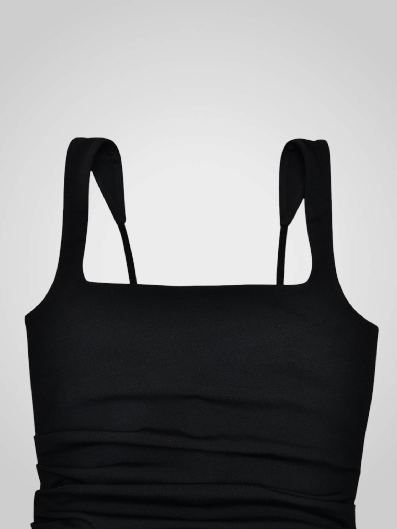 ✅ Κολακευτική Σιλουέτα – Ένα εφαρμοστό μπούστο με τετράγωνη λαιμόκοψη και ρυθμιζόμενες τιράντες για μια σμιλεμένη, γυναικεία γραμμή.