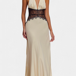 Ένας σχεδιασμός που ακτινοβολεί εκλεπτυσμένη θηλυκότητα και κομψότητα. Το Ashanty συνδυάζει έναν έντονο λαιμόκοψη με μια λεπτή λωρίδα δαντέλας στη μέση, δημιουργώντας μια τέλεια αντίθεση ανάμεσα στο διακριτικό και το τολμηρό. Το ρέον ύφασμα αγκαλιάζει το σώμα με χάρη, ενώ η πλάτη που είναι εντελώς εκτεθειμένη προσθέτει μια απροσδόκητη και τολμηρή στροφή.