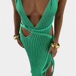 Jamie Μάξι Πλεκτό Φόρεμα με Λεπτομέρεια Καλωδίωσης στη Μέση – Lyra Athens