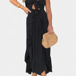 Kailani Μάξι Φόρεμα Ruffle με Μπροστινό Κόμπο