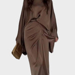 Maddy | Μάξι Σατέν Φόρεμα με Μανίκια Νυχτερίδα