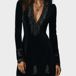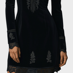 Naia | Ρετρό Μαύρο Βελούδο Διακοσμημένο Με Δαντέλα Μίνι Φόρεμα