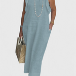 Φυσική ελαφρότητα με μια πινελιά κομψότητας. Το φόρεμα Yurena είναι κατασκευασμένο από ένα απαλό μείγμα λινό και βαμβάκι, ιδανικό για τις πιο ζεστές μέρες. Η χαλαρή και αμάνικη σιλουέτα του προσφέρει φρεσκάδα και ελευθερία κινήσεων, ενώ η μακριά κοπή του προσθέτει μια χαλαρή αλλά κομψή παρουσία.