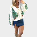 Γνωρίστε το καρντάν που κυριολεκτικά φέρνει τη μαγική ατμόσφαιρα των γιορτών μαζί σας! Το Ο Χριστουγεννιάτικος Δένδρος Ζεστό Καρντάν διαθέτει πλούσια γραφικά χριστουγεννιάτικου δέντρου σε στυλ chenille στα μανίκια και ένα μεγάλο, γιορτινό δέντρο στην πλάτη — ολοκληρωμένο με στολίδια, αστέρια και όλες τις χαρούμενες λεπτομέρειες.