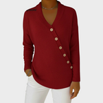 Rizza | Καθημερινό μονόχρωμο πουλόβερ με V λαιμόκοψη και λοξά κουμπιά