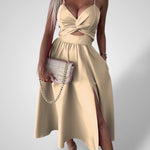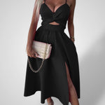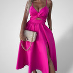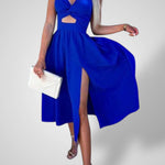 ΤΟΛΜΗΡΟ & ΣΟΦΙΣΤΙΚΕ ΜΕΡΟΣ: Τραβήξτε τα βλέμματα με αυτό το εντυπωσιακό midi φόρεμα, σχεδιασμένο για αυτοπεποίθηση και κομψότητα. Το τολμηρό μπροστινό σκίσιμο και η λεπτομέρεια cut-out προσθέτουν μια μοντέρνα, σέξι αίσθηση στην βραδινή ή πάρτι εμφάνισή σας.