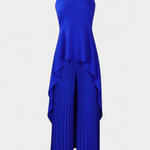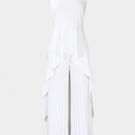 Μινιμαλιστικός σχεδιασμός με μια σιλουέτα που ρέει με διακριτικότητα. Το σετ Χρυσούλα συνδυάζει ένα αμάνικο τοπ με κλειστό λαιμό και ασύμμετρο περιτύλιγμα με πλισέ παντελόνι ευρείας πτώσης. Η αντίθεση μεταξύ της δομής του πάνω μέρους και της ελαφρότητας του παντελονιού δημιουργεί μια κομψή και σύγχρονη παρουσία.
