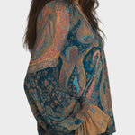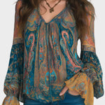 Η Μποέμ Σιφόν Μπλούζα σε Μπλε-Πράσινο & Κεχριμπάρι είναι μια ευέλικτη και εντυπωσιακή προσθήκη σε οποιαδήποτε γκαρνταρόμπα, συνδυάζοντας άψογα την μποέμ αισθητική με τη σύγχρονη κομψότητα. Τα πλούσια χρώματα και ο λεπτομερής σχεδιασμός την καθιστούν ιδανική για καθημερινή χρήση καθώς και για ειδικές περιστάσεις.