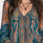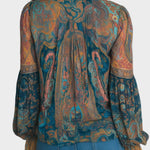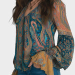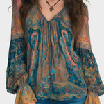 Alina | Μποέμ Σιφόν Μπλούζα με Λαχούρια σε Μπλε-Πράσινο (Teal) και Κεχ – Lyra Athens