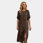 Το φόρεμα Helena δημιουργήθηκε για γυναίκες που θέλουν να αισθάνονται κομψές χωρίς να θυσιάζουν την άνεση στην καθημερινότητά τους. Η ελαφριά και ρευστή γραμμή του ακολουθεί φυσικά το σώμα, προσφέροντας ένα διακριτικό και ισορροπημένο στυλ. Απλό, ευέλικτο και εύκολο να φορεθεί, είναι το ιδανικό κομμάτι για δραστήριες ημέρες, χαλαρές εξόδους ή όμορφες στιγμές όπου θέλετε να είστε άνετη και καλοντυμένη.