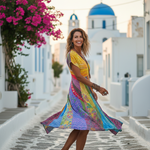 Το Nefeli - Φόρεμα με σχέδιο Μποέμ με σχέδιο Ήλιου είναι σχεδιασμένο για γυναίκες που θέλουν να αισθάνονται ελεύθερες, άνετες και φυσικά κομψές κάθε μέρα. Κατασκευασμένο από ελαφρύ και διαπνέον μείγμα βαμβακιού και λινού, αγκαλιάζει απαλά το δέρμα προσφέροντας δροσερή και αέρινη αίσθηση, ιδανική για τις πιο ζεστές ημέρες. Το διακριτικό σχέδιο εμπνευσμένο από τον ήλιο χαρίζει καλλιτεχνικό, μποέμ χαρακτήρα, ενώ η χαλαρή γραμμή κολακεύει τη σιλουέτα με φυσικό και αρμονικό τρόπο. Είναι το ιδανικό φόρεμα για να μεταβαίνετε effortlessly από τις καθημερινές βόλτες στις χαλαρές καλοκαιρινές βραδινές εξόδους.