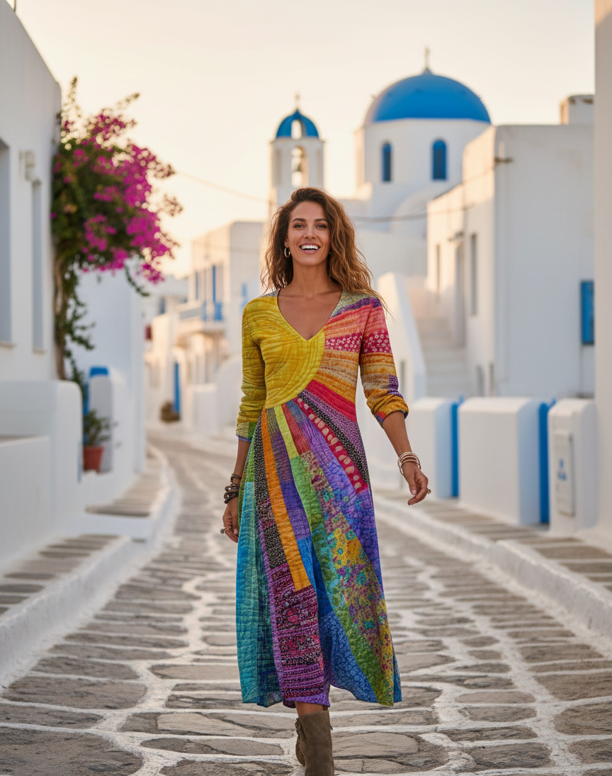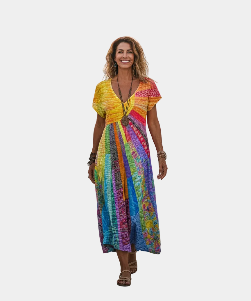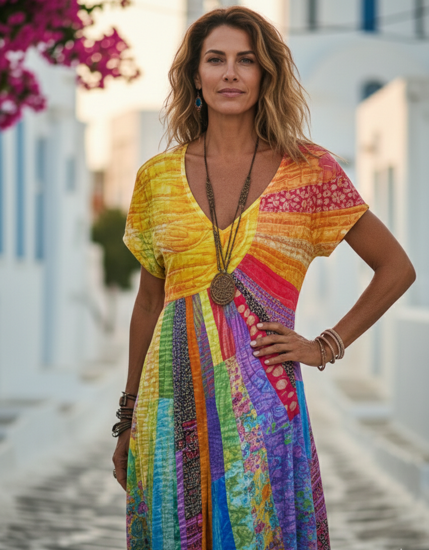 Nefeli - Φόρεμα με σχέδιο Μποέμ με σχέδιο Ήλιου