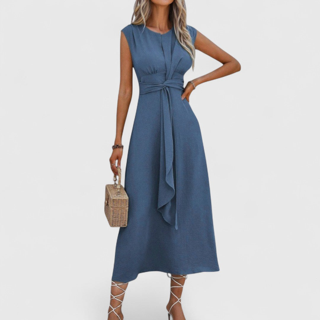 Πηνελόπη , το αέρινο μάξι φόρεμα χωρίς μανίκια με κολακευτικό στρογγυλό ντεκολτέ, φέρνει καθημερινή κομψότητα σε κάθε εμφάνιση.